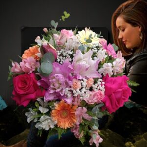 BUQUÊ COM 12 JUMILIA E 10 ASTROMÉLIAS PINK