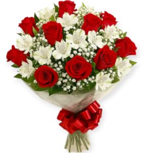 BUQUÊ 12 IMPORTADAS (VF) COM 1 PACOTE DE ASTROMÉLIAS BRANCAS