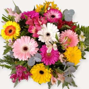 BUQUÊ 9 GERBERAS E 9 ASTROMÉLIAS COLORIDAS