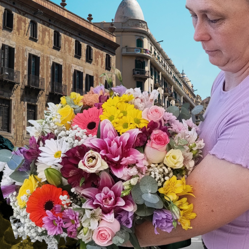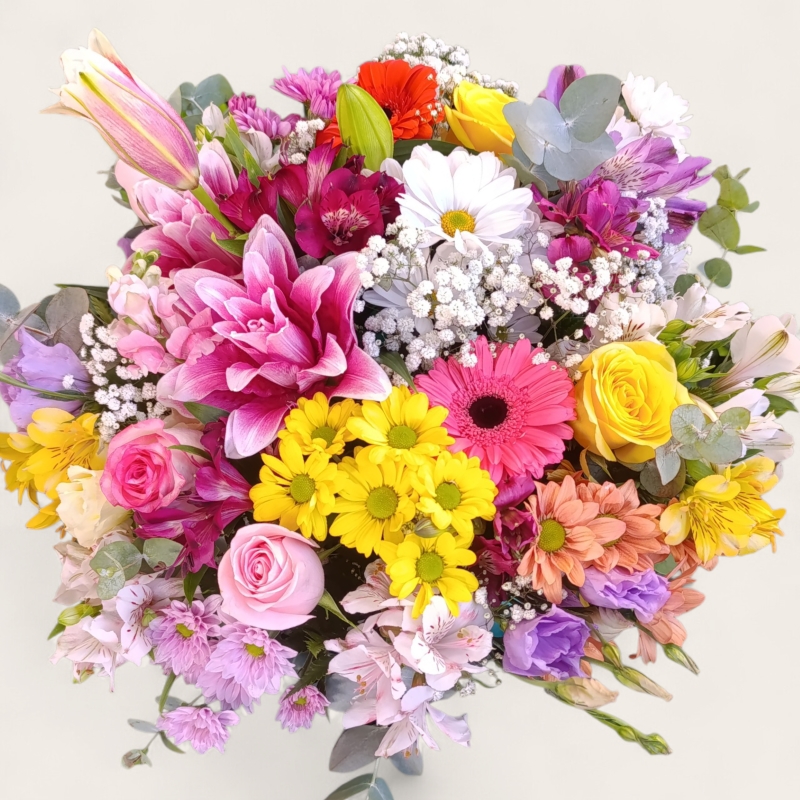 1 BUQUÊ TOP HORIZONTE TONS ROSA E AMARELO APROXIMADAMENTE 22 FLORES