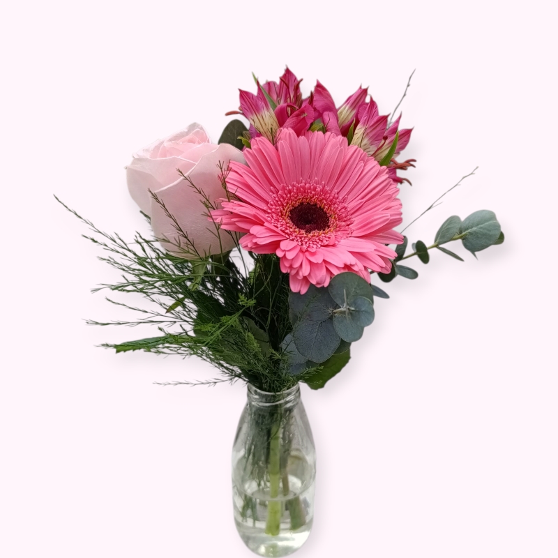 SOLO DE GARRAFINHA COM 3 FLORES TONS ROSA