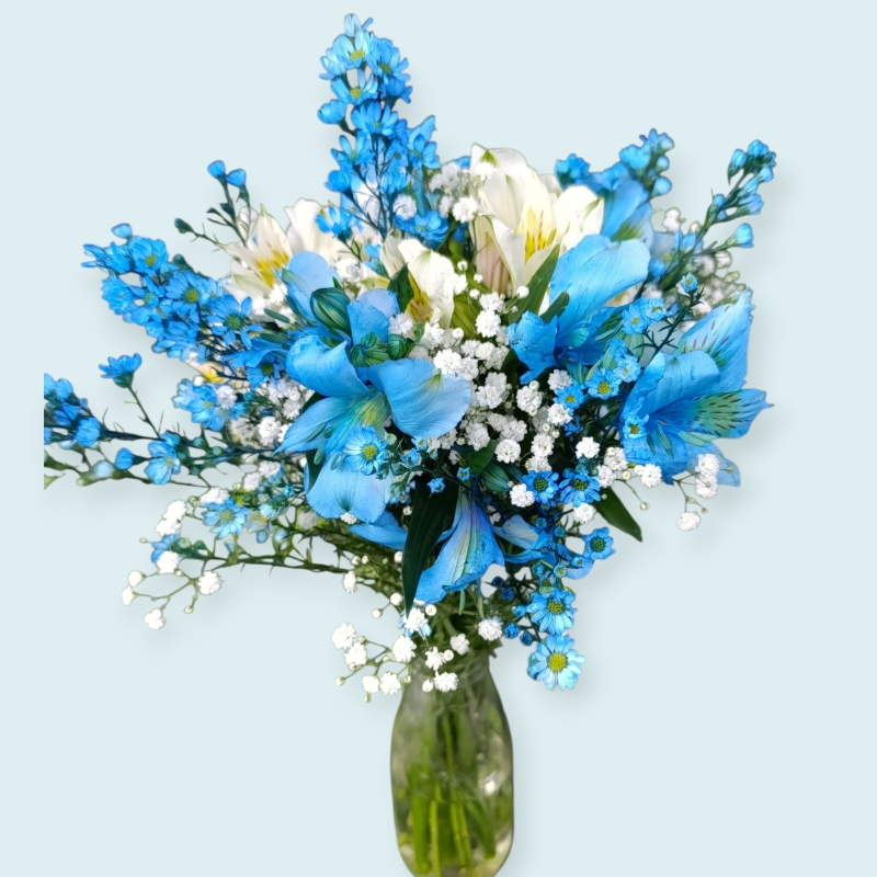 1 SOLO GARRAFINHA COM ASTROMÉLIAS 3 BRANCA E 3 AZUL